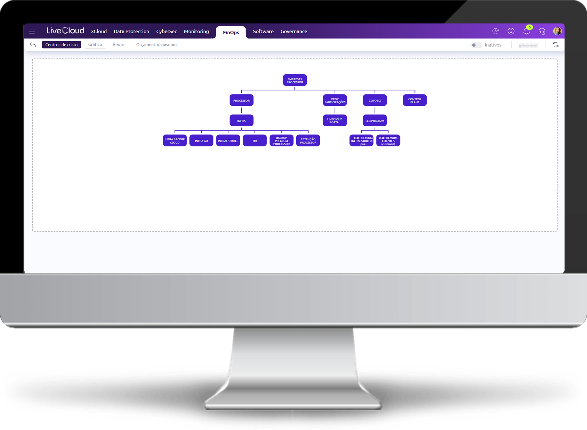 Com LiveCloud, o cliente controla os contratos, consumo e realiza a gestão de billing de cada ambiente até o nível de recurso
