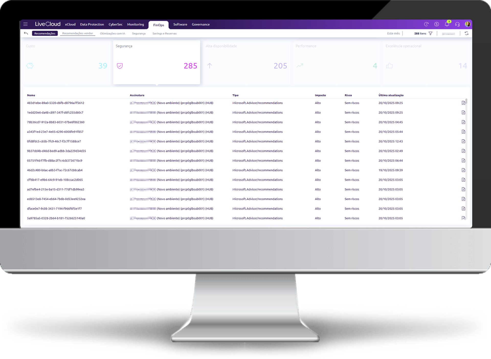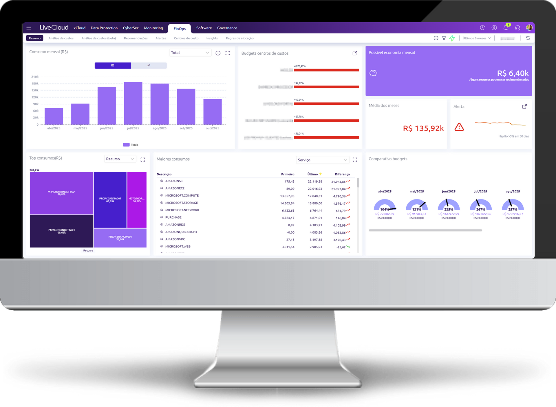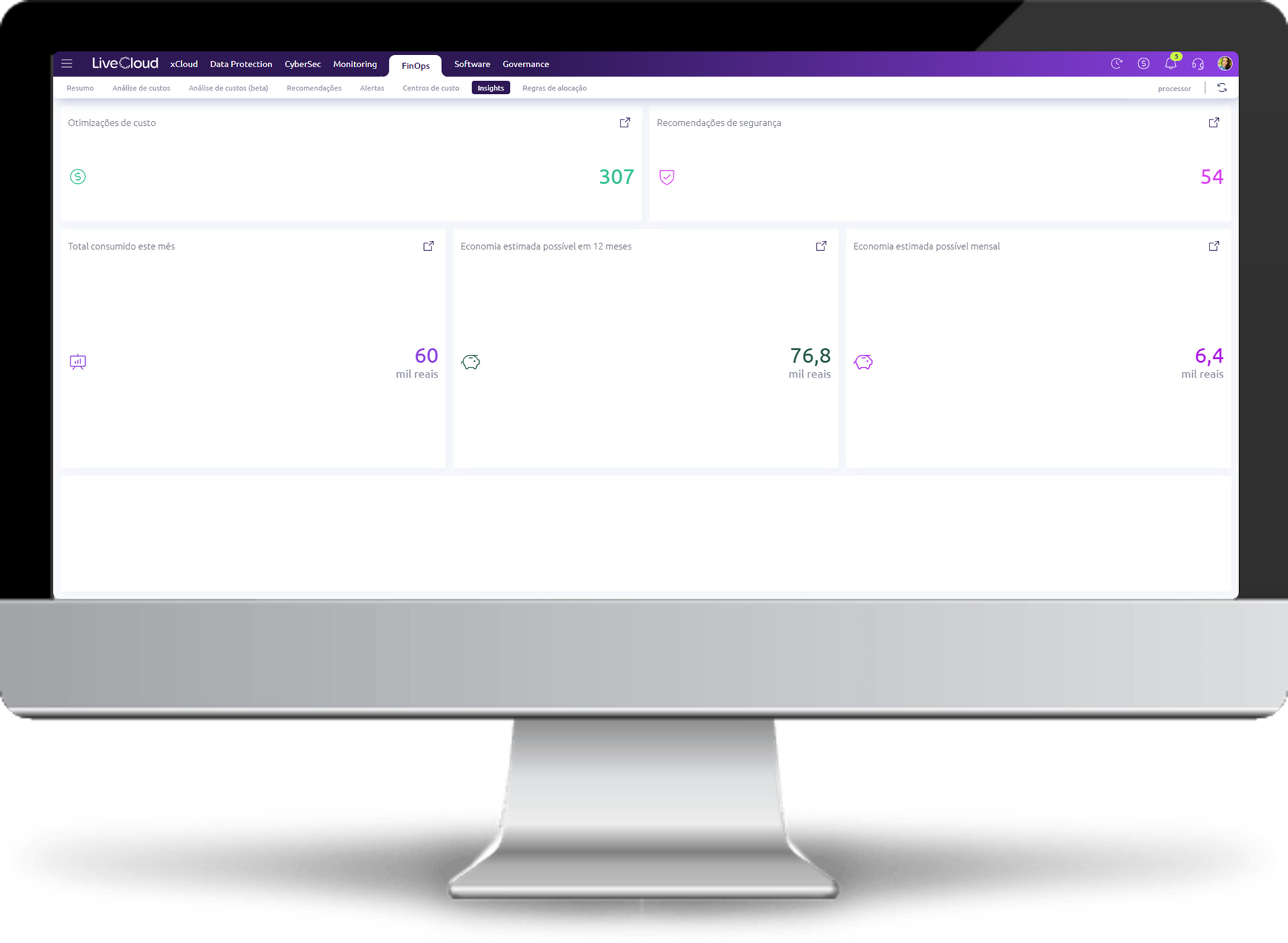 Com a implantação de LiveCloud FinOps, o cliente conta com insights e insumos para tomada de decisão